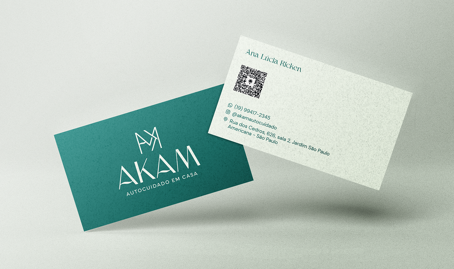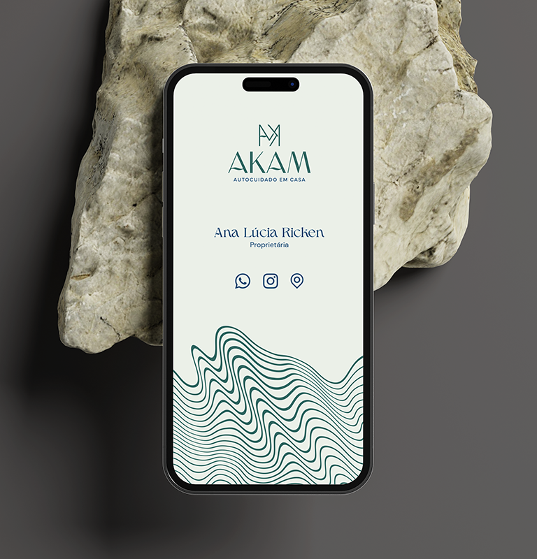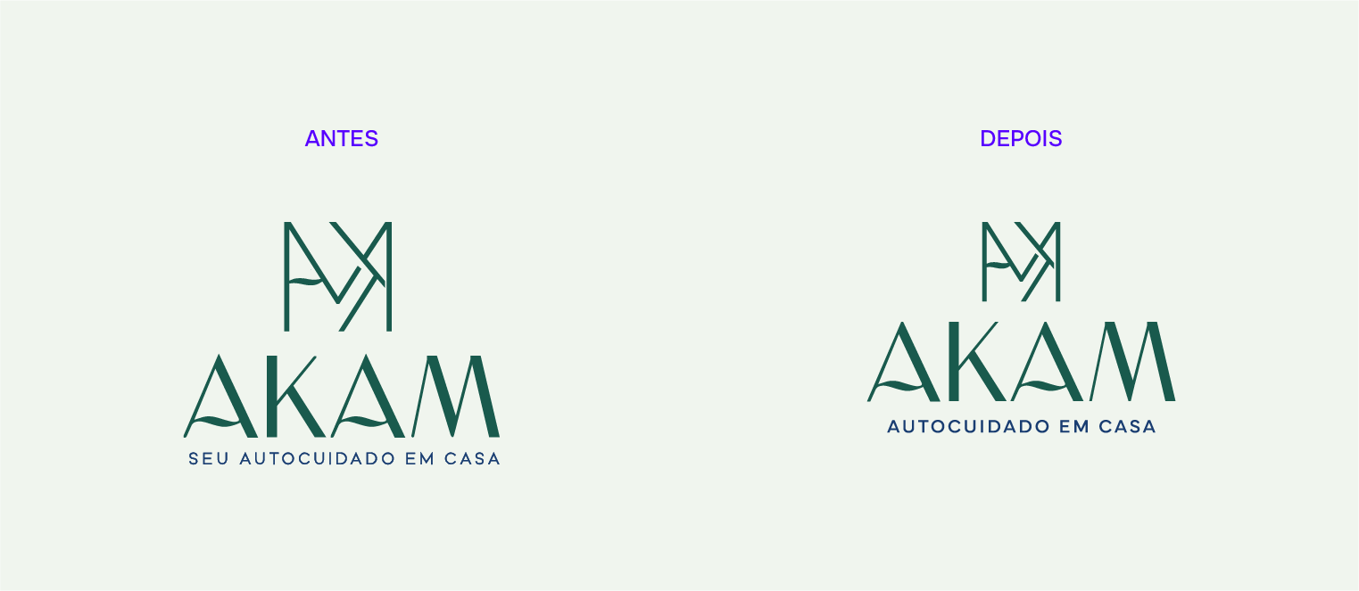 Mantivemos a essência da logo original, mas ajustamos detalhes estruturais, harmonizamos tipografia e símbolo, corrigimos espaçamentos e aprimoramos a composição geral. Refinamos a paleta de cores para transmitir mais conforto e frescor, preservando a ligação com a natureza e a sensação de acolhimento. A partir daí, desenvolvemos toda a identidade visual — algo que antes não existia — criando um sistema versátil, coeso e alinhado ao posicionamento e à personalidade única da Akam.
