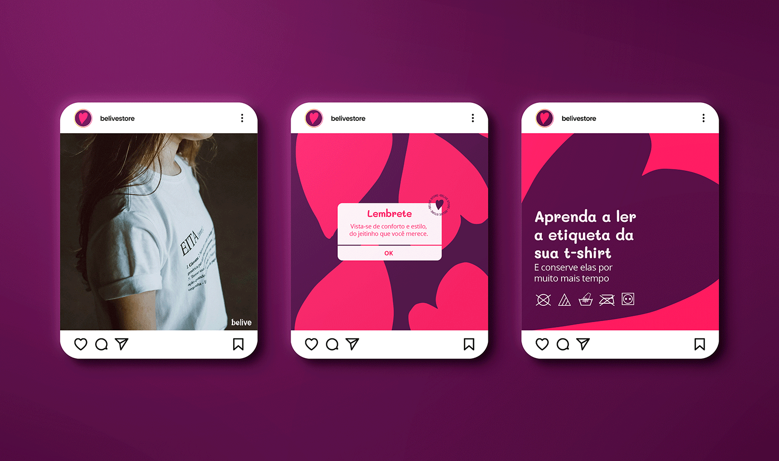 Para isso, unimos tipografias com contrastes sutis, um símbolo feito à mão e uma paleta afetiva e leve. O resultado é uma marca que emociona, acolhe e se conecta — assim como a Belive faz com cada t-shirt entregue.