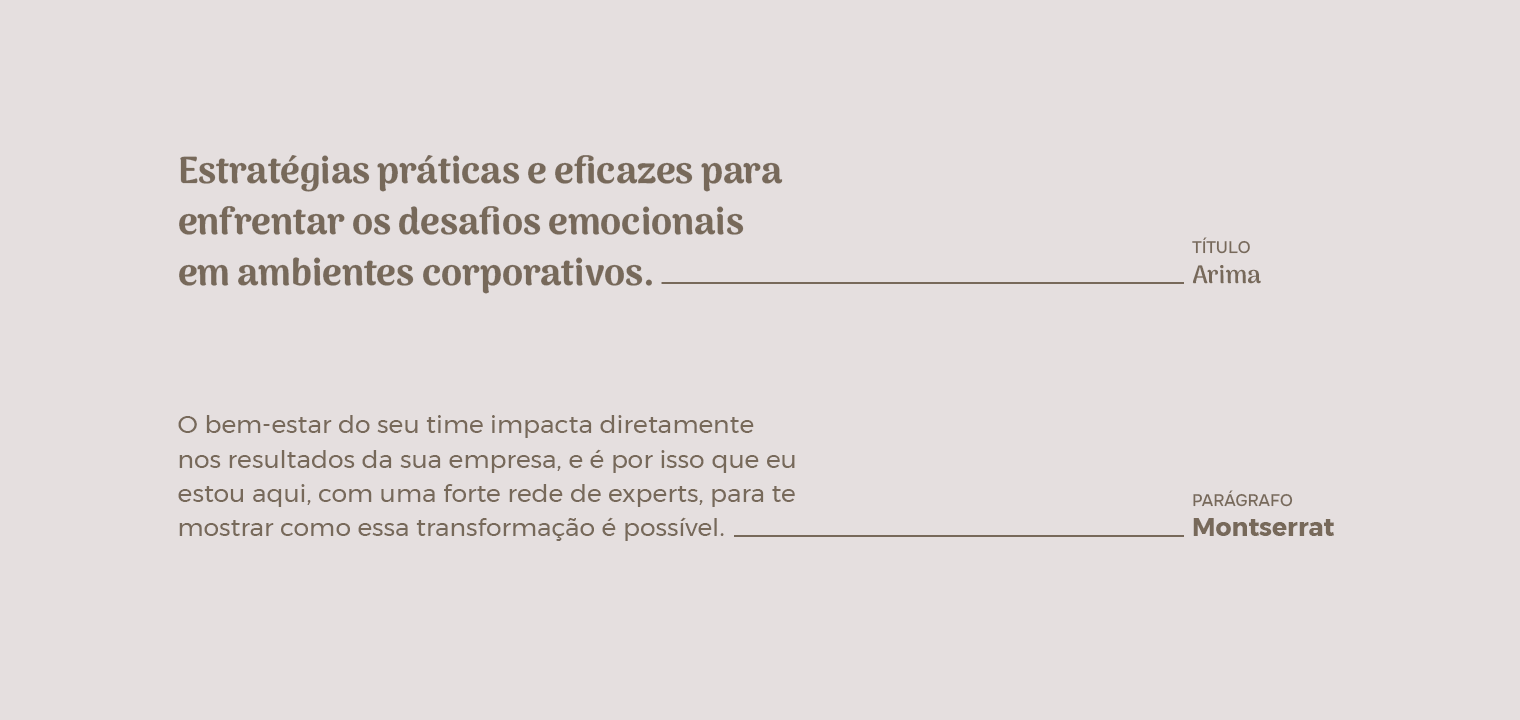 Visualmente, criamos uma identidade para redes sociais que transmite sofisticação, confiança e proximidade. A paleta de cores reforça a credibilidade da marca, enquanto a tipografia Arima, com suas serifas suavemente arredondadas, traz elegância sem perder o tom acolhedor. Em contraste, a Montserrat adiciona modernidade e fluidez à comunicação.