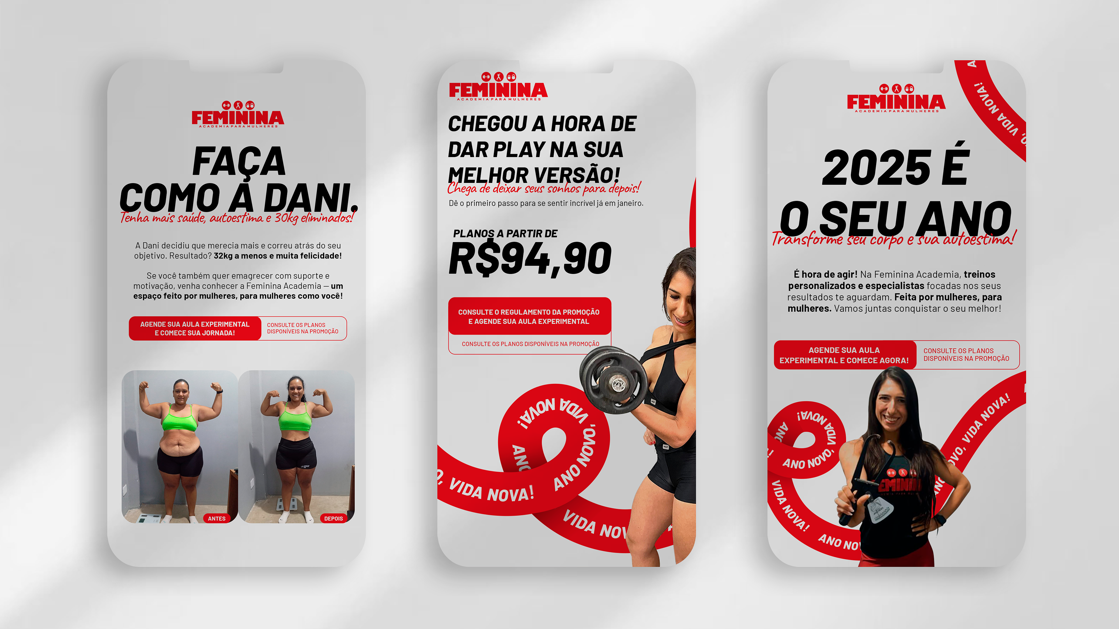 A Feminina Academia é mais do que um espaço de treino—é um movimento! Um ambiente exclusivo para mulheres, onde a força, a saúde e a superação andam lado a lado. Há quase 10 anos, a Feminina se destaca pelo acompanhamento personalizado e por criar uma comunidade que inspira e motiva.