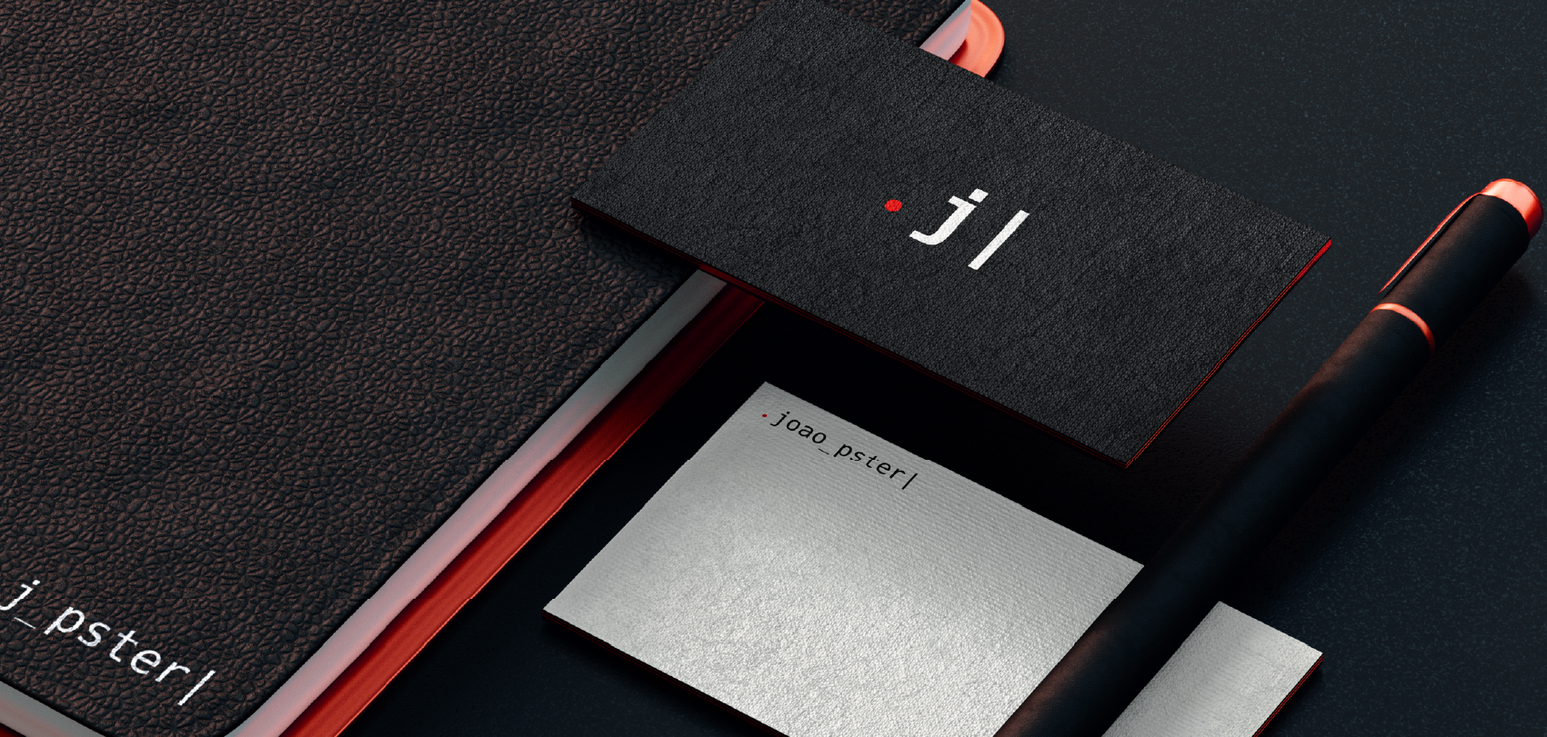 O símbolo é a abreviação do nome da marca, deixando o ponto, que seria o início do comando, o j do “joão” e a barra, mostrando que algo mais será digitado, que está apensa no início. Também foi usada uma tipografia toda em caixa baixa e sem acentos buscando reproduzir de forma mais fiel uma tela de programação.