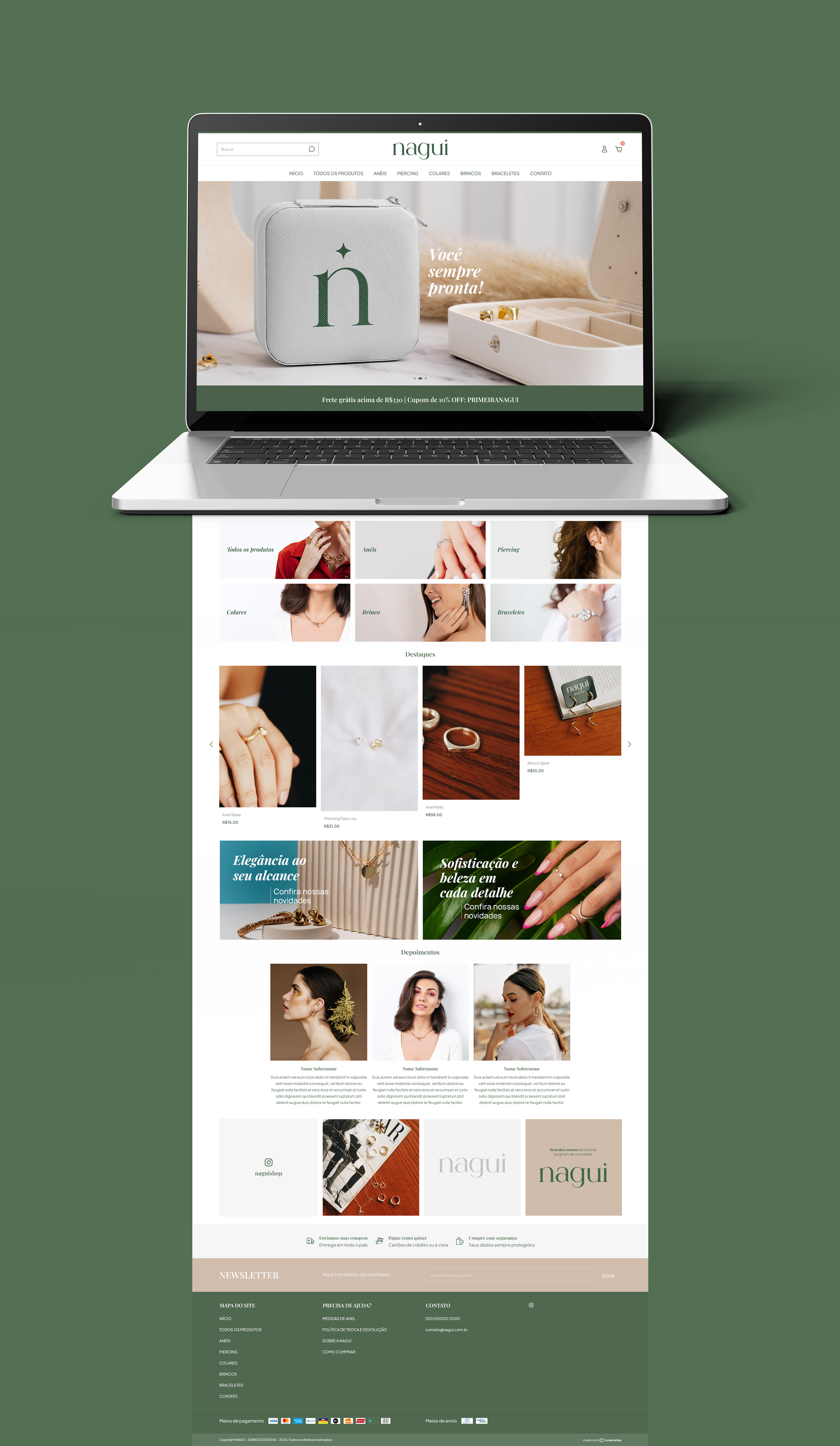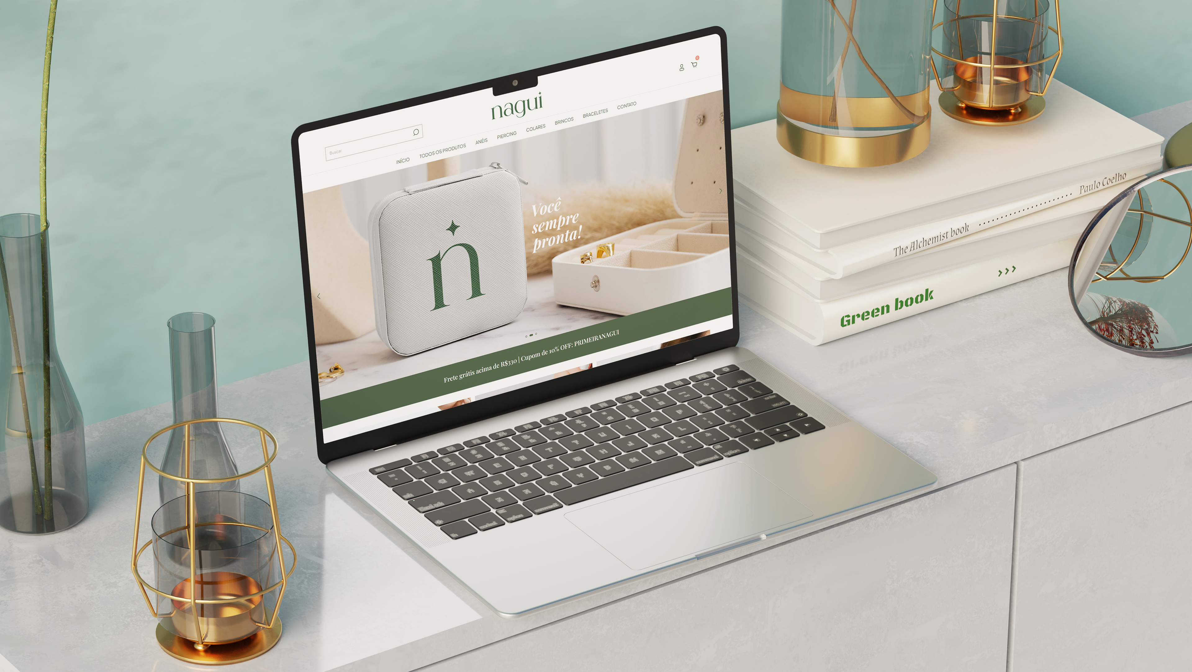 O e-commerce da Nagui, desenvolvido dentro da nuvemshop, teve como objetivo, para além de reforçar sua identidade visual para seu público, melhorar a navegabilidade do usuário.