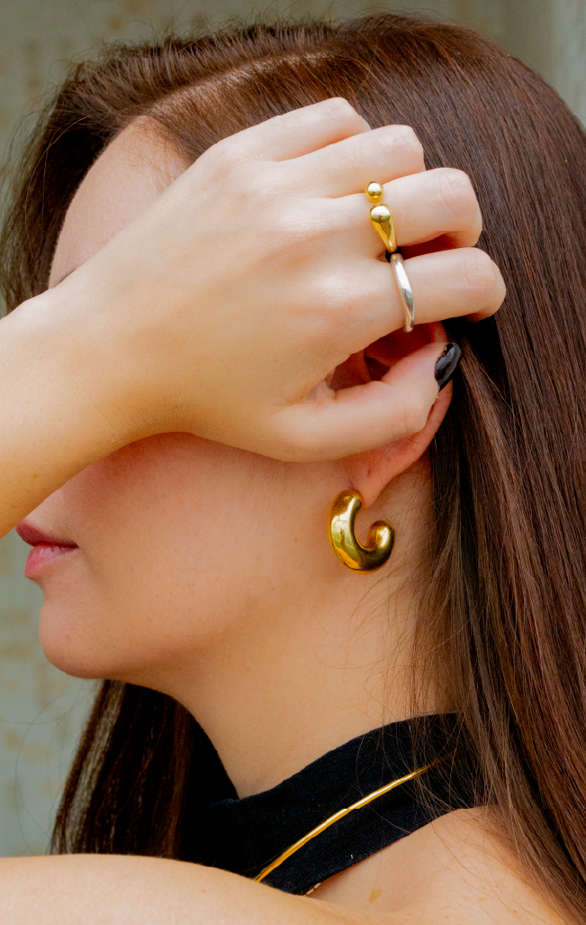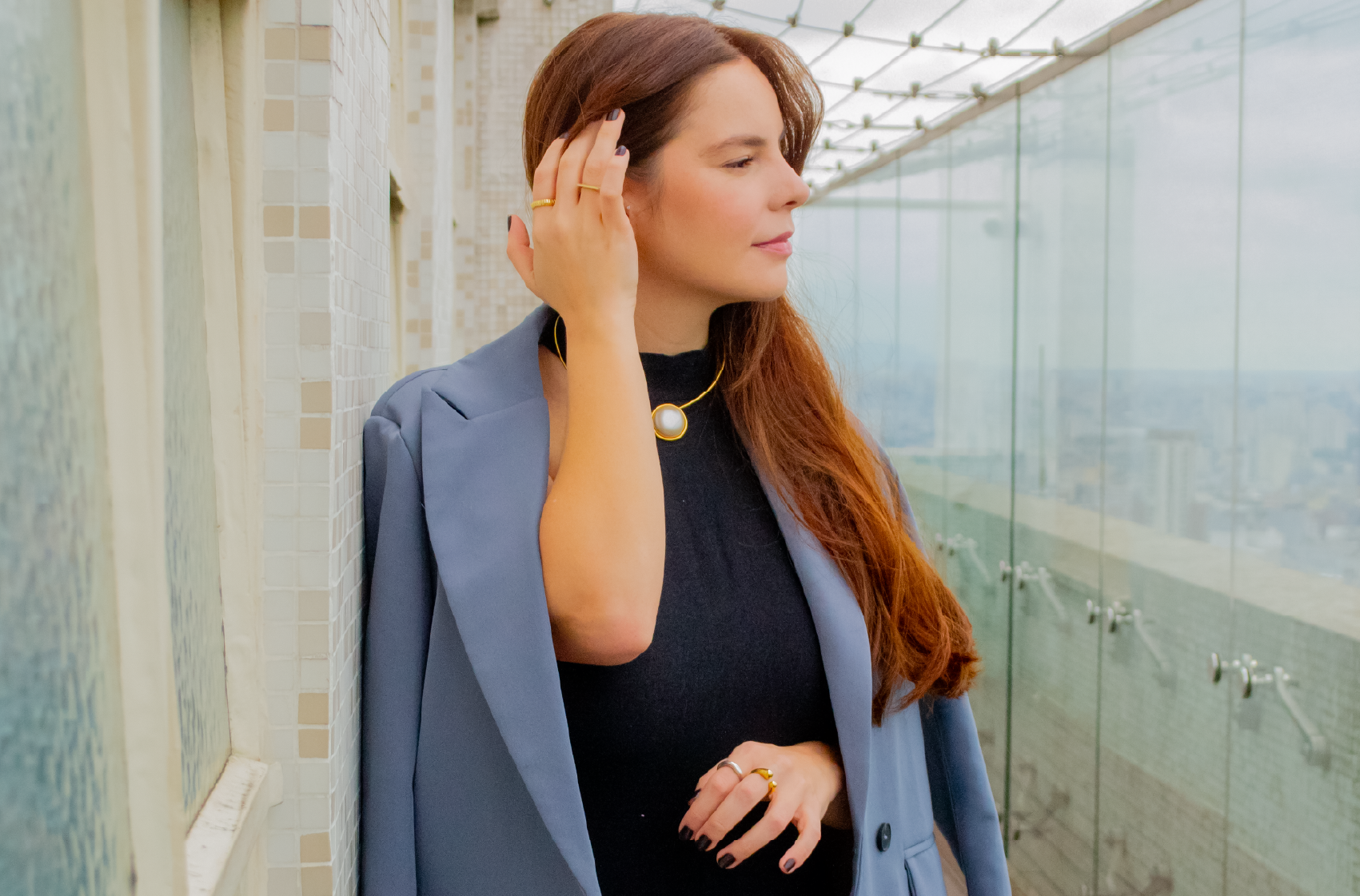 The photo shoot found the perfect setting for this story at Farol Santander. A space that blends sophistication, culture, and memory — exactly what Nagui proposes in each piece. The café offered an intimate and refined atmosphere, while the exhibition spaces positioned the accessories not as ordinary products, but as objects of art and expression.