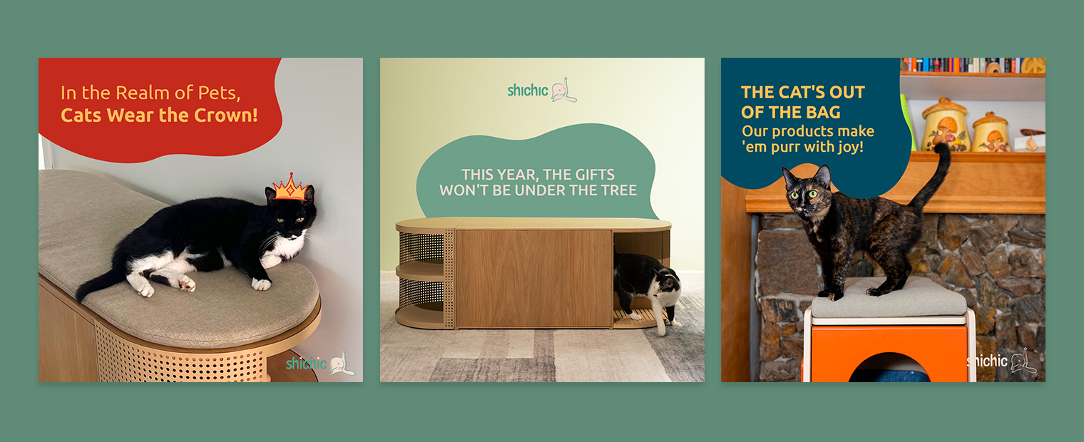 The challenge on social media was to communicate this vision clearly and inspiringly, building brand authority, showcasing its unique features, and delighting a discerning audience—cat lovers who also care about design and sustainability. Each post needed to be transformed into a visual experience that conveyed sophistication, affection, and purpose.
