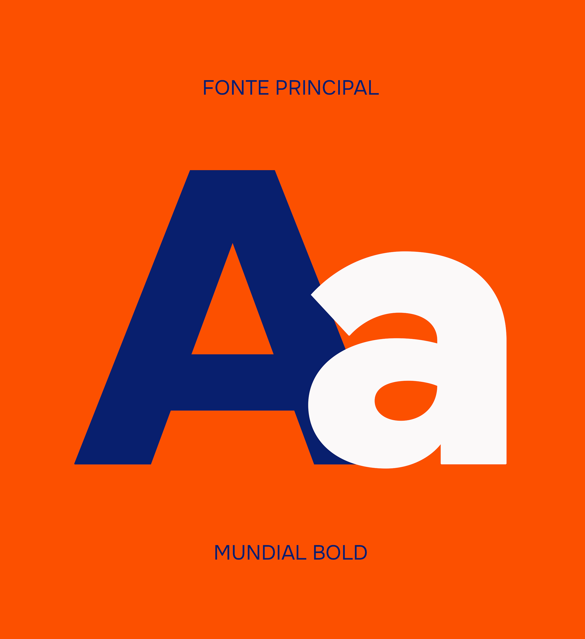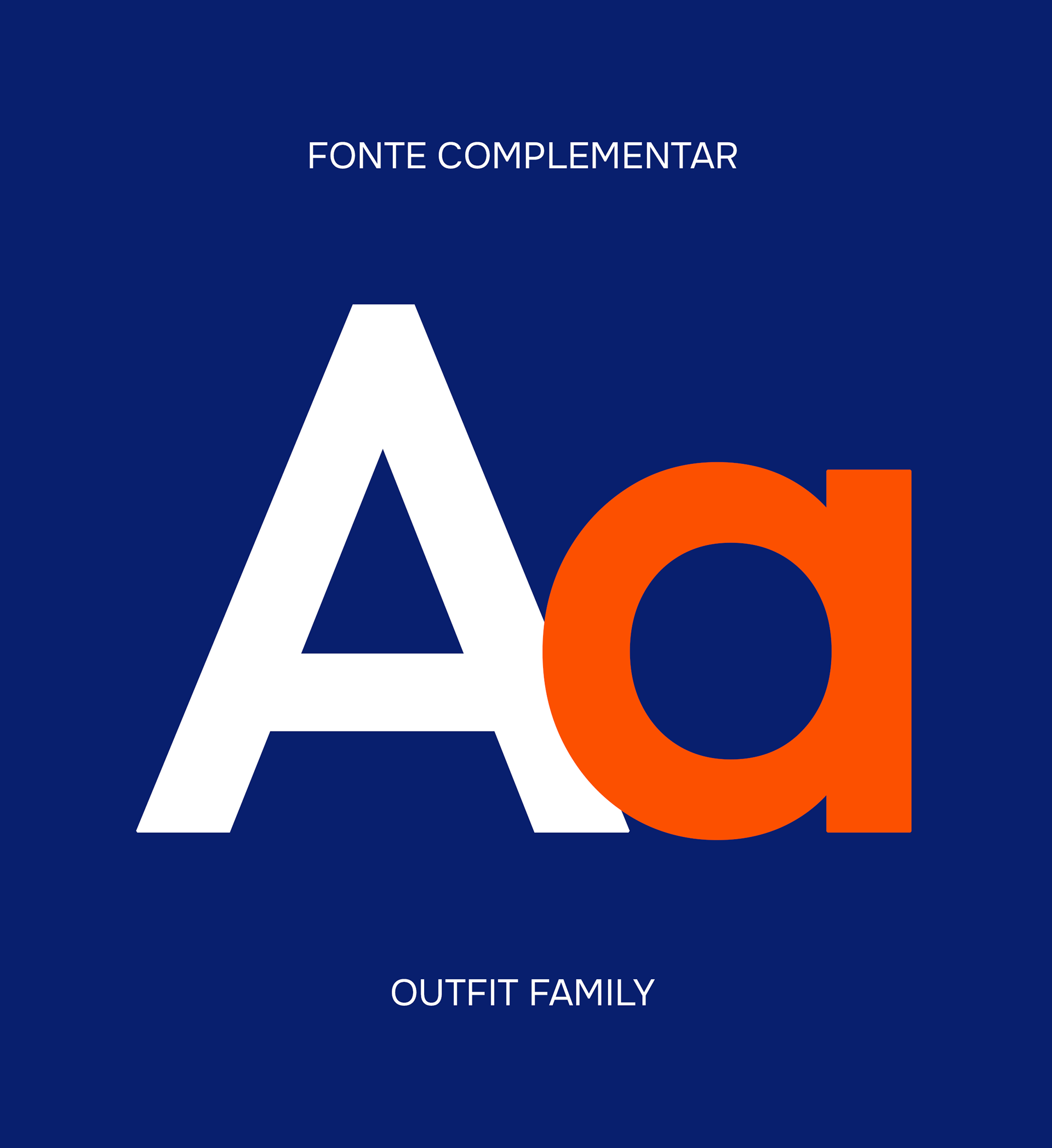 Trouxemos também uma tipografia sem serifa moderna, com traços retos e sem contrastes a fim de trazer confiança e jovialidade para a marca, juntamente a estabilidade e autoridade de seu nome todo escrito em caixa alta.